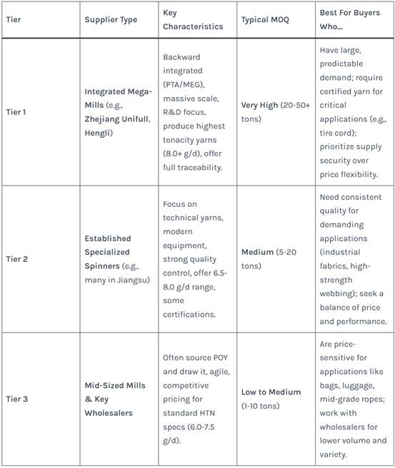 Table 1: Tiered Analysis of Chinese HTN Yarn Suppliers